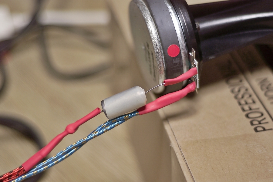 이 트위터를 추천해 주신 분께서 콘덴서 (원래 용어는 케페시터) 만큼은 꼭 오일콘덴서를 사용해야 한다고 하셨다. 비싼거 필요 없고 싼 거라도 오일 콘덴서를 사용해야 한다고 하셔서 장터링해서 구한 빈티지 스프라그 1uF 콘덴서다. 필름 콘덴서나 반도체로된 콘덴서를 사용하면 소리가 영 아니라고 하셔서 싼 오일 콘덴서 구하느라 애먹었다. 업자들이 파는 빈티지들은 좀 비싼 편이고 요즘 새것으로 나오는 것들도 가격대가 만만치가 않다. 빈티지 콘덴서지만 신품이고 저렴하게 구입할 수 있어서 만족스러웠다.