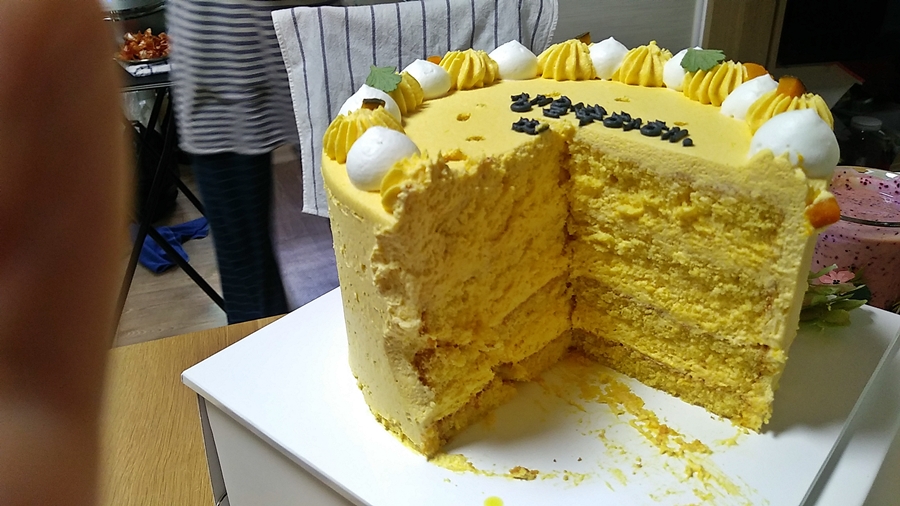 전주 하가지구의 수제 케잌 카페 '레브' 가 정말 최고의 맛을 선사하는 케잌을 꽤 오래 제공해줬었는데 이제 문을 닫아서 다른 카페를 검색해서 주문한 단호박 케잌.