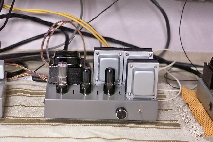 프리는 위 카페에서의 공제품으로 오됴메냐라는 분께서 만들어 주시던 6V6초크 프리입니다. 앰프 설계는 역시나 고뇌님이 해주신 걸로 알고 있구요. 작지만 무게가 실로 엄청납니다. 파워로 나가는 출력은 3조구요. 소스 입력은 2조입니다. 입력이 2개인것이 좀 아쉽습니다. 3개는 되야 하는데..