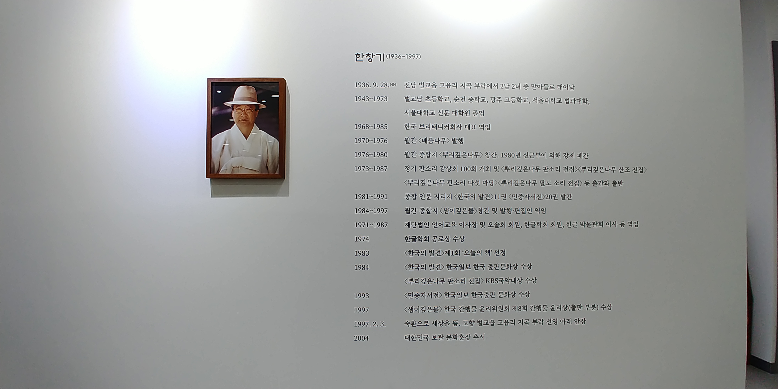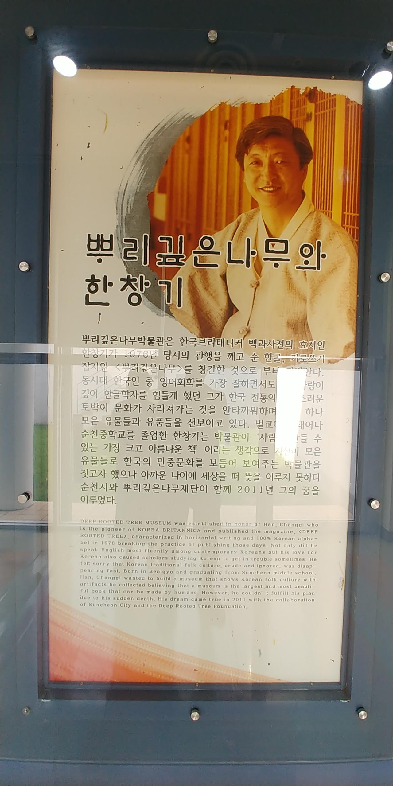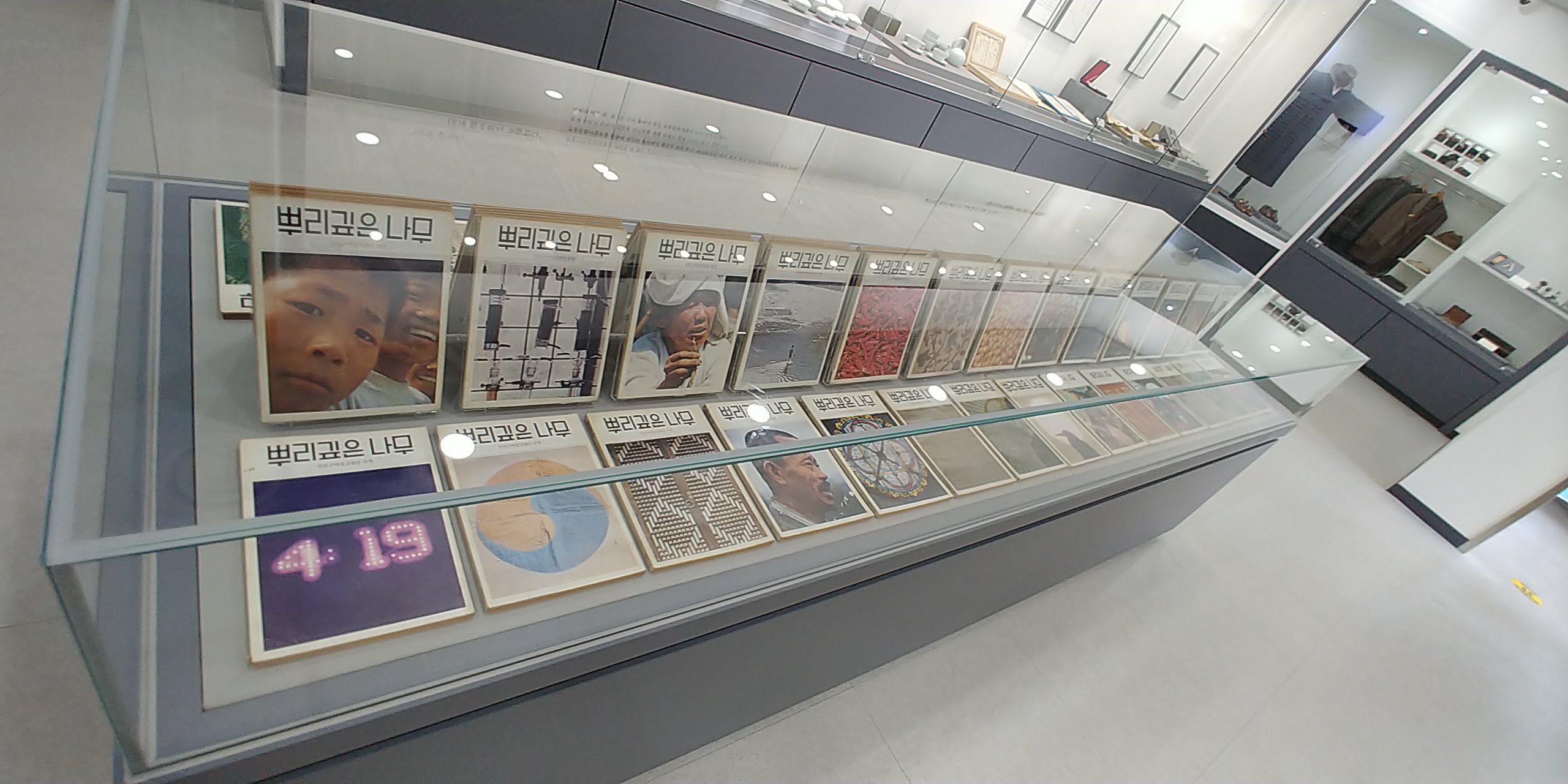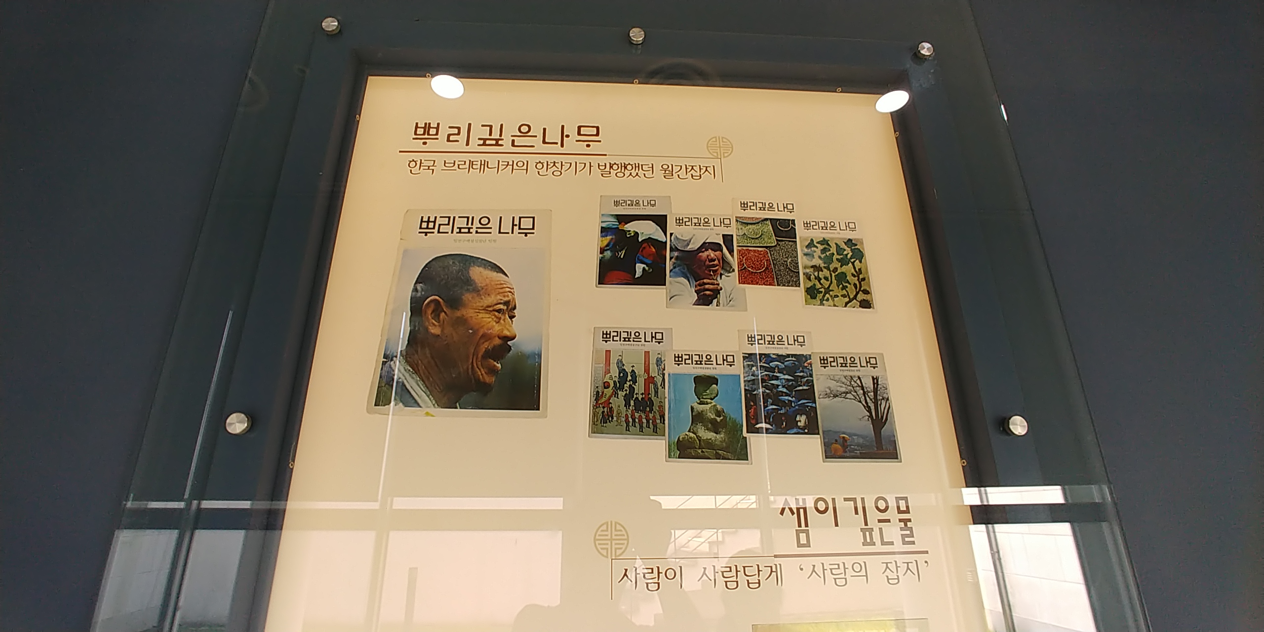 잡지 <뿌리깊은나무>의 발행인 한창기님의 수집품과 그의 행적, 발행했던 잡지들, 출판물과 우리 소리를 녹음했던 음반들이 전시되어있었다.