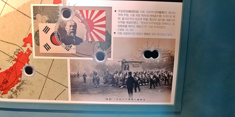 안중근 의사가 저격하는 장면을 재현해놨는데요.