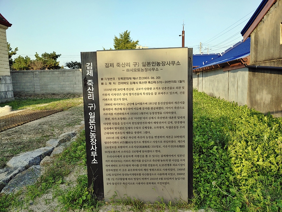 전주 군산간 가도인 전군가도를 개설하고 쌀등 수탈 기지로 삼은건 유명하죠. 이 곳 만경평야의 죽산면은 그 중 김제의 수탈기관의 핵심이었던 듯 합니다.