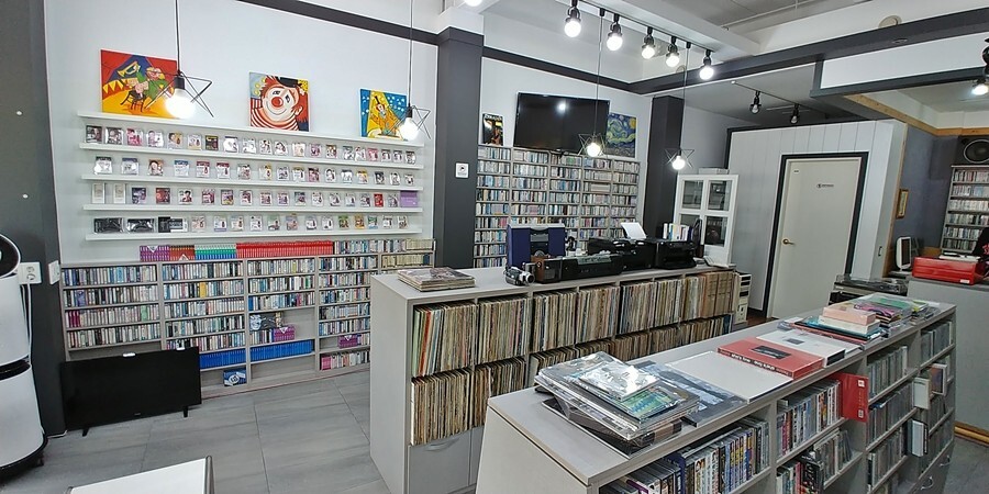 오래된 레코드점 답게(?) CD며 테이프며 빛 바랜 것들이 많아서 안타까웠네요.