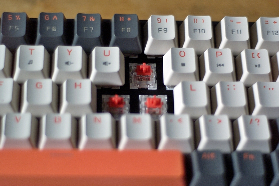적색 리니어 스위치인데 스위치 하우징이 투명이라 이쁘다. 어디 회사 스위치인지 각인이 되어있는데 잘 안보여서 (눈이? ) 정체는 모름.