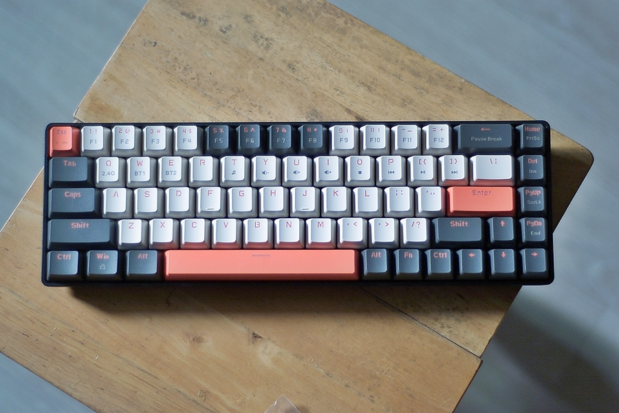 일반적인 미니 키보드인 60% 배열인데 우측에 한 줄 더해서 Del 키라던가를 두어서 사용 편의성을 높였다.