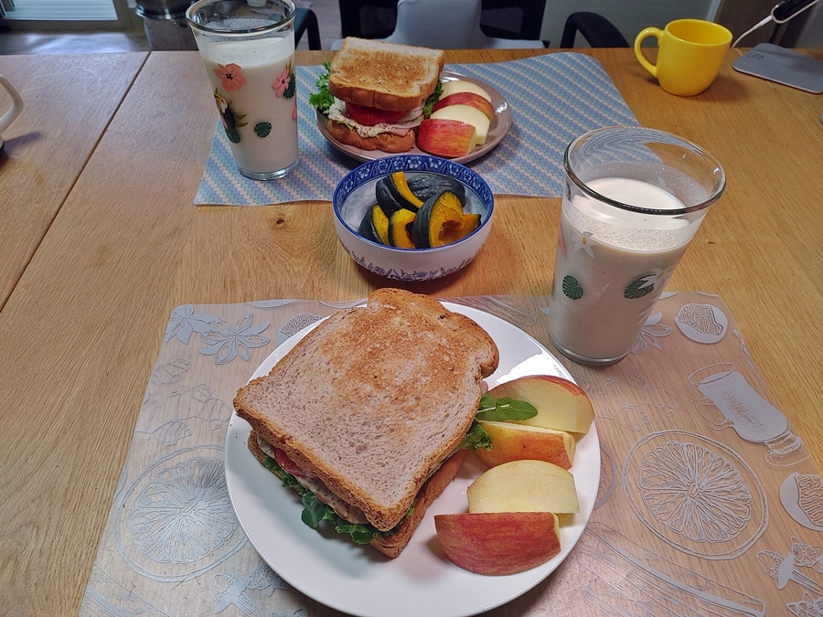 행사장으로 출동하기 전에 식빵 굽고, 드레싱 소스 만들고.. 암튼 열심히 만들어서 먹고 ~~