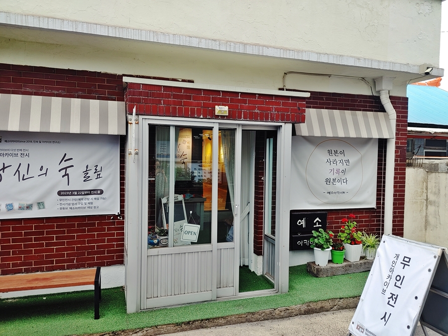 돌아오는 길에 읍내를 통과하다 문득 '예소 아카이브' 라는 조그만 전시공간을 발견해서 차를 세우고 들어가 봄.