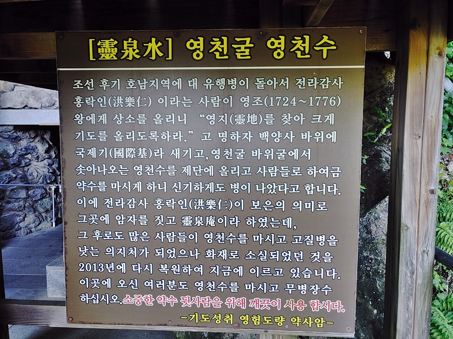 약사암에서 100미터 더 가면 영천굴이란 곳이 나오고 거기 약수가 있습니다.