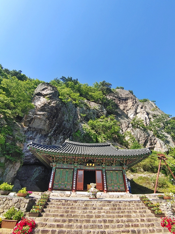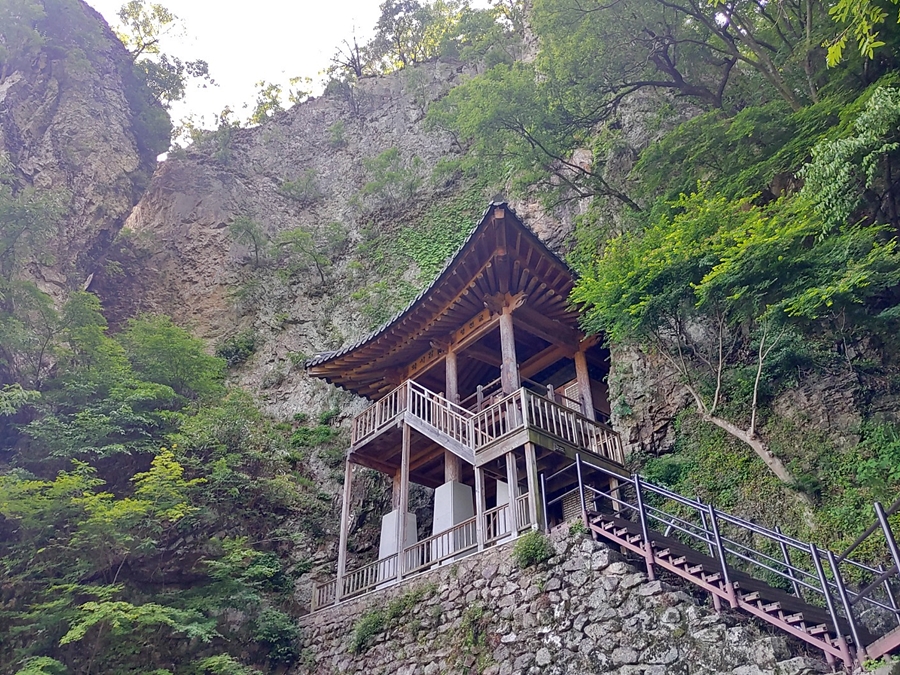 영천굴 누각에서 보면 앞의 바위와 뒤 바위가 벌어져 있는게 멋있어 보였네요. 사진은 별 볼일 없어보이지만요..ㅎ