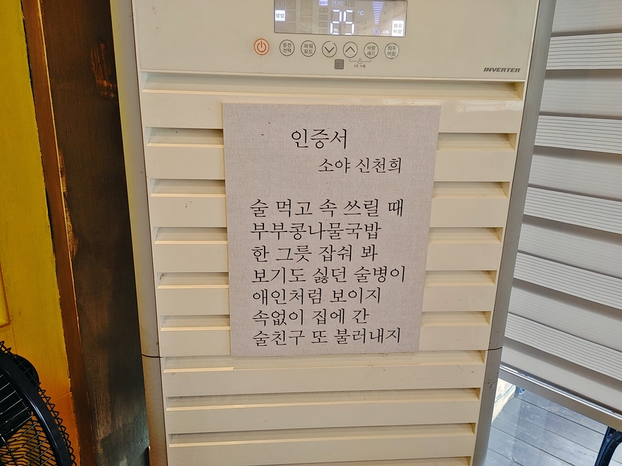 이 식당 전에는 부부콩나물국밥집이라고 21년도 포스팅이 있는걸 보면 이쪽으로 그 이후에 이전하신 건가 봅니다. 대화중에 이사온지 그렇게 오래되지는 않았다고 들었던 것 같거든요.