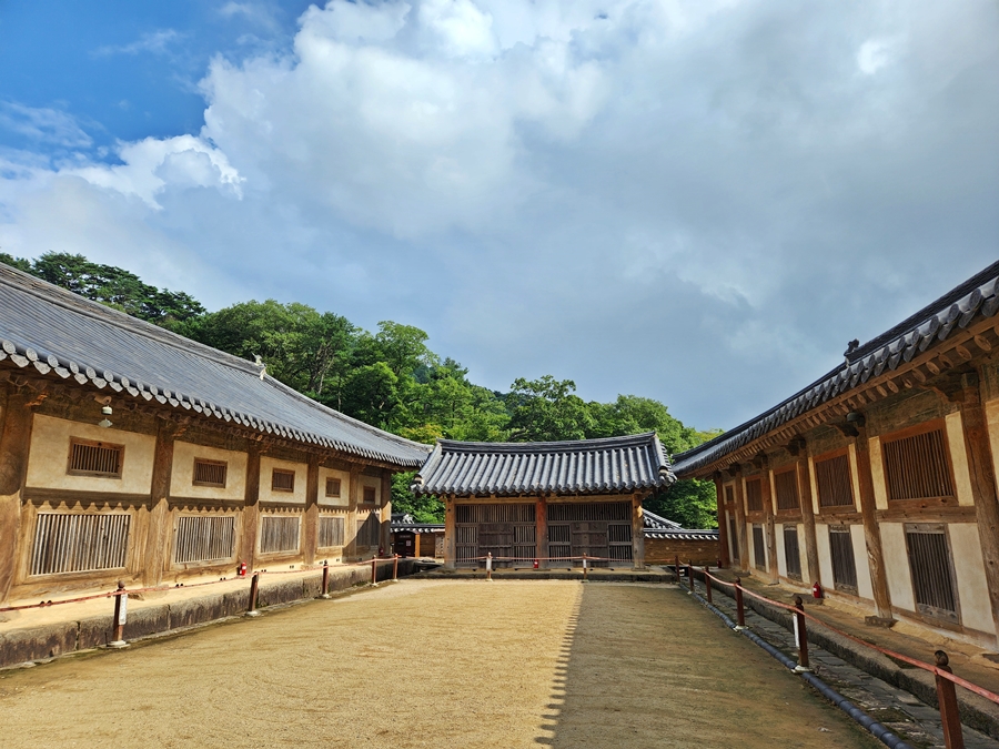 대장경 보관하는 곳 내부 풍경입니다. 우측 건물에서 스님이 독경을 열심히 하고 계셨고, 몇 보살님들이 스님에게 열심히 부채질 해주고 계시는 모습이 인상적이었네요.
