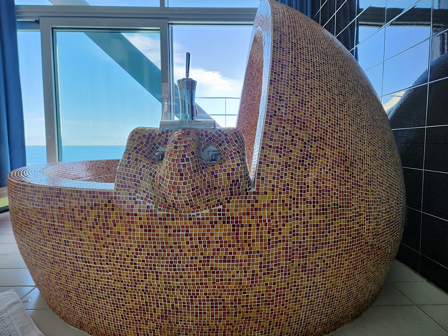 아침에 일어나서 호텔 욕조와 바다 풍경~~