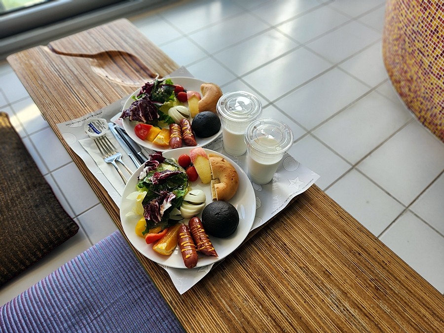 전날 조식을 신청하면 방으로 아침 9시에 배달을 해주는데 색시가 사진을 많이 찍어서 골라서 여러장 올려봄. 크게 특색은 없지만 그래도 멋진 풍광과 함께 하니 맛있었음.