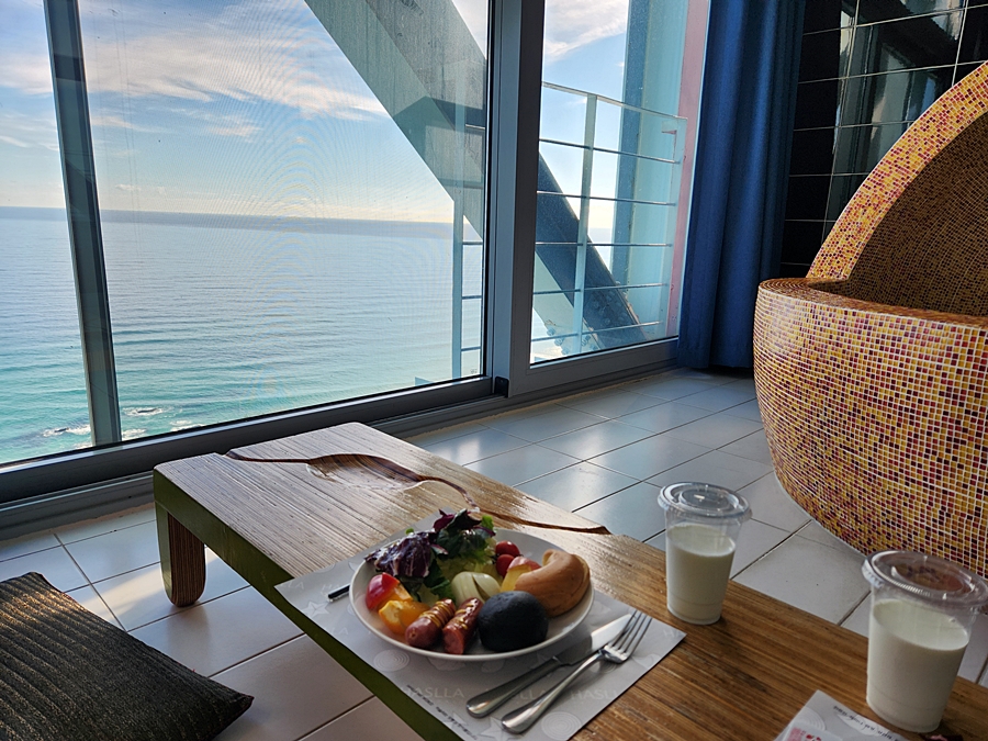 큰 맘 먹고 바다가 보이는 곳에 숙소를 예약.