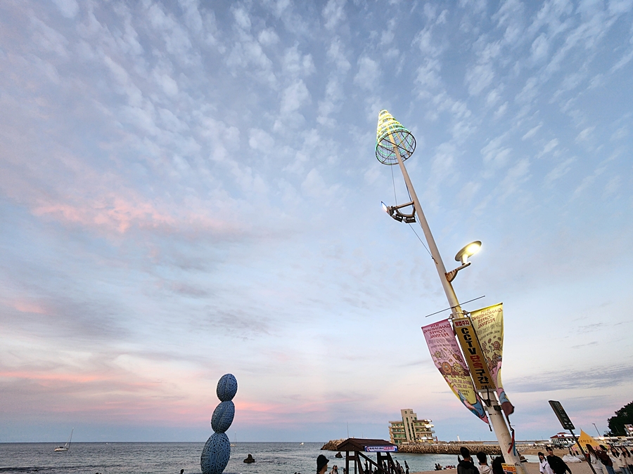 강릉 커피 거리가 안목해변이란 곳에 있는데 커피 마시고 나가면서 찍은 해변과 거리 모습입니다.